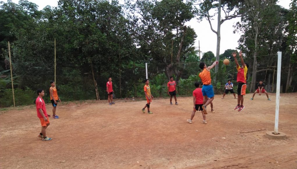 REHAT – Bintara Pembina Desa (Babinsa) Kelurahan Pulokerto mengajak pemuda yang tergabung dalam Karang Taruna untuk menggelar turnamen bola voli selama pelaksanaan kegiatan TNI Manunggal Membangun Desa (TMMD) ke 104 Kodim 0418/Palembang.
