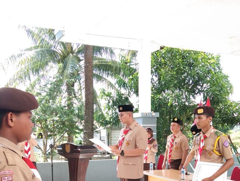 Dalam sambutanya, plt Kadispora menyebutkan anggota pramuka yang dilantik yakni terdiri dari 20 orang penegak laki laki dan puteri 9 orang anggota.