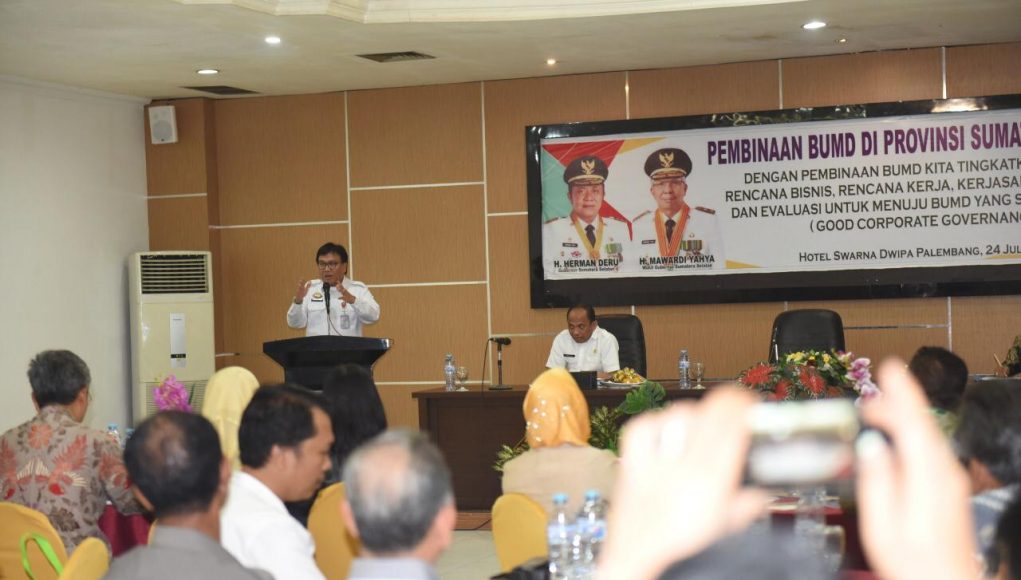“BUMD dan perangkatnya harus mampu mengatur strategi. Kita harus kembangkan kelebihan masing-masing, terutama komisaris dan jajarannya harus berkolaborasi dalam memberikan pandangan serta pemikiran demi jalannya perusahaan secara baik,” ungkap Sekretaris Daerah Provinsi Sumatera Selatan H. Nasrun Umar saat membuka kegiatan pembinaan BUMD di Provinsi Sumsel dalam rangka peningkatan kinerja, rencana bisnis, rencana kerja, kerjasama, pelaporan dan evaluasi untuk menuju BUMD yang sehat dan baik yang diselenggarakan di Hotel Swarna Dwipa Palembang, Rabu (24/7).