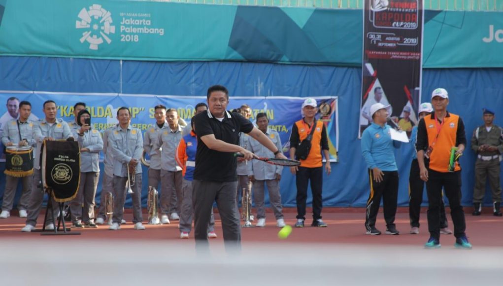REHAT – Dalam rangka memperingati HUT Bhayangkara ke-73 serta memeriahkan peringatan HUT Kemerdekaan RI ke – 74 Gubernur Sumatera Selatan Herman Deru Membuka dengan resmi Turnamen Tenis Kapolda Cup, di Lapangan Tenis Jakabaring Sport City, Jum’at(30/8).