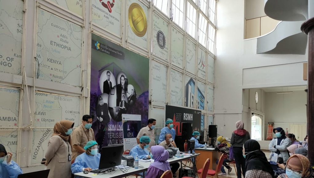 Palembang – Rumah Sakit Umum Pusat Dr. Mohammad Hoesin (RSMH) Palembang mengelar swab massal bagi seluruh tenaga Kesehatan di lingkungan RSMH Palembang dalam upaya pengendalian penyebaran virus Covid-19 varian Omicron, Rabu (9/2/2022).