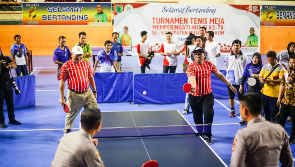 SEKAYU, – Pemerintah Kabupaten Musi Banyuasin bekerjasama dengan Perusahaan Daerah Air Minum Tirta Randik menyelenggarakan Turnamen Tenis Meja dalam rangka memperingati Hari Ulang Tahun ke-78 Kemerdekaan Republik Indonesia Tahun 2023, di Gedung Olahraga Ranggonang Sekayu, Kamis (10/8/2023).