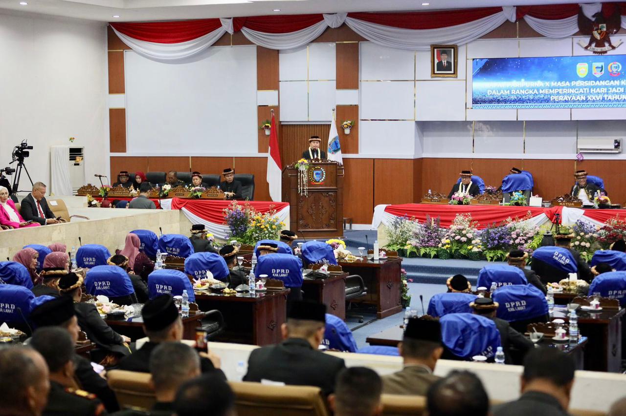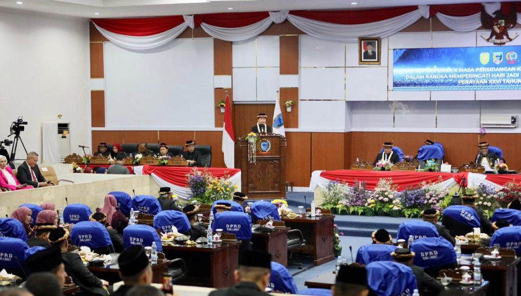Lahat, – Penjabat (Pj) Gubernur Sumatera Selatan (Sumsel) Agus Fatoni didampingi Pj Ketua Tim Penggerak Pembinaan Kesejahteraan Keluarga (TP PKK) Sumsel Tyas Fatoni menghadiri Rapat Paripurna DPRD Kabupaten Lahat X Masa Persidangan Ketiga Tahun Sidang 2024 dalam rangka Memperingati Hari Jadi Kabupaten Lahat ke-155 Tahun. Kegiatan ini berlangsung di Gedung DPRD Kabupaten Lahat, Sumatera Selatan, Senin (20/5/2024).
