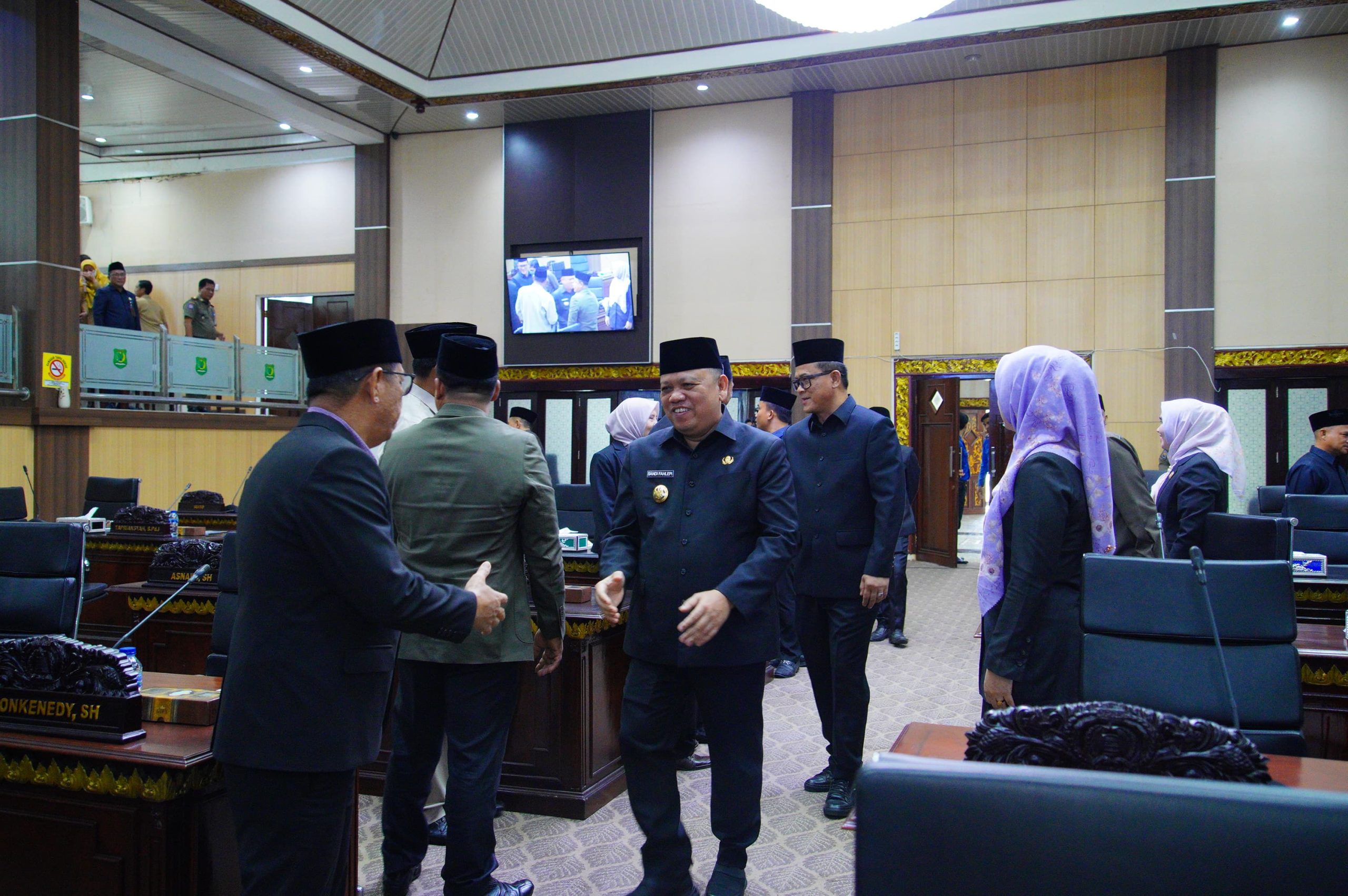 Rapat berlangsung di Ruang Rapat Paripurna DPRD Muba dipimpin langsung oleh Ketua DPRD Kabupaten Muba, Afitni Junaidi Gumay SE dan dihadiri oleh Wakil Ketua dan anggota DPRD, serta perwakilan Forkopimda dan Kepala Perangkat Daerah Kabupaten Muba, Selasa (12/11/2024).