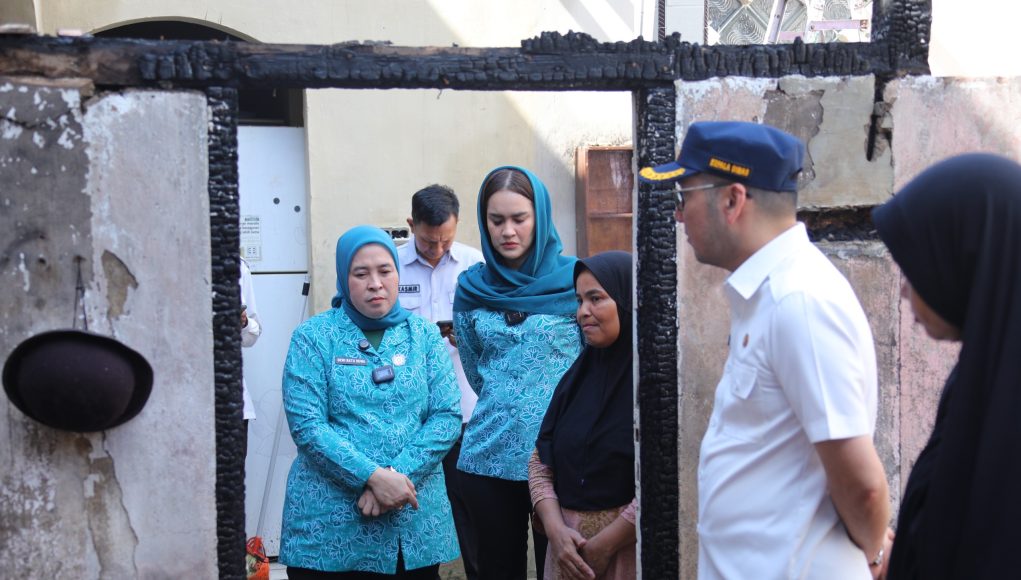 Palembang – Ketua TP PKK Kota Palembang Dewi Sastrani didampingi Ketua Dharma Wanita Persatuan (DWP) Palembang Ida Royani serta Camat IT III Rusmeidi Saputra, menyalurkan bantuan kepada warga korban kebakaran di Jalan M. Isa Lorong Sikam RT 25 RW 07 Kelurahan Kuto Batu, Kecamatan Ilir Timur III, Rabu (16/4/2025).